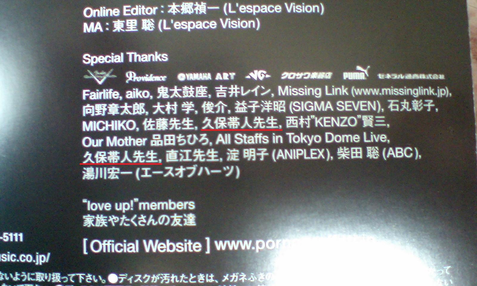 あ、これはポルノのニューアルバム(ゆかなと水樹奈々が声の出演をしているよ)のスペシャルサンクス欄です