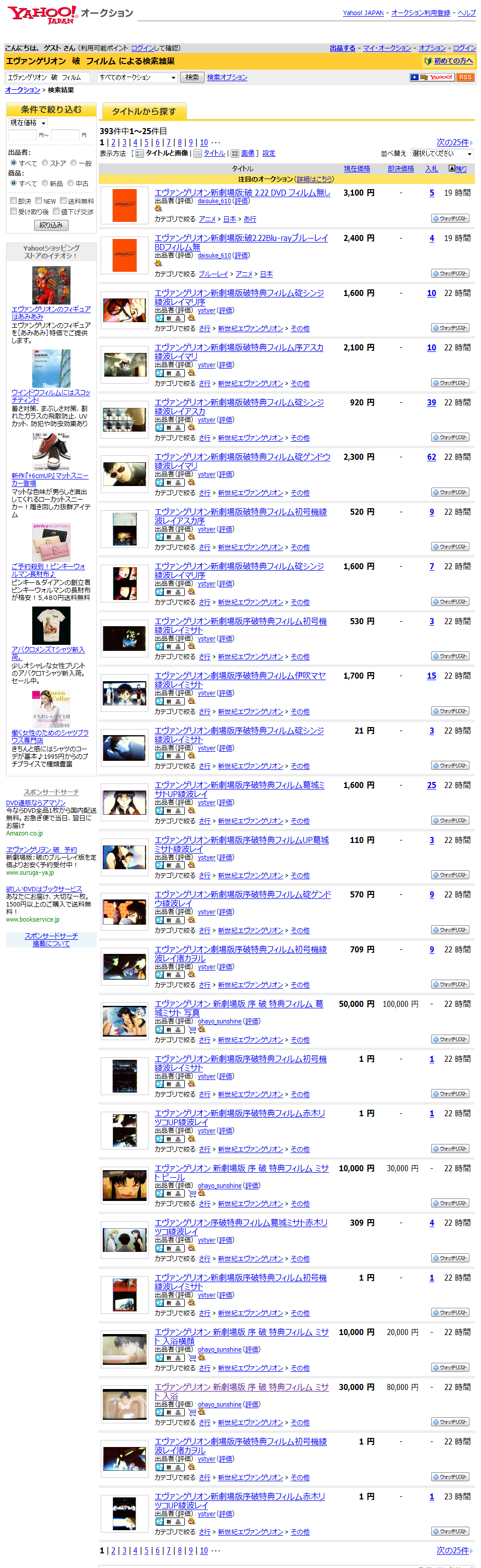 「ヱヴァンゲリヲン新劇場版:破」は予約が殺到し、初回出荷が80万枚を超えると大手マスコミに報じられが、