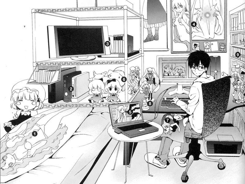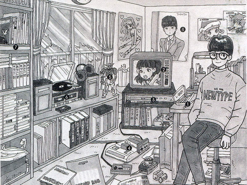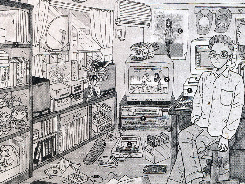 ゲーム機器やパソコンなども年代を追って進化していく様がわかるようになっている。部屋の主であるオタクの様相からも、
