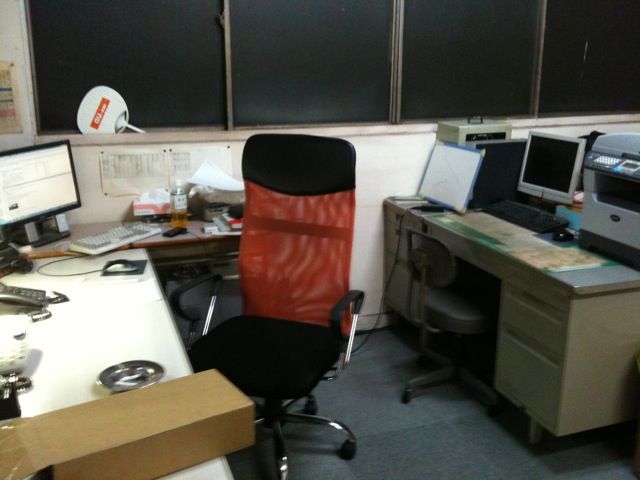 自宅兼事務所、学校の机みたいなのは知人の塾講師から貰った