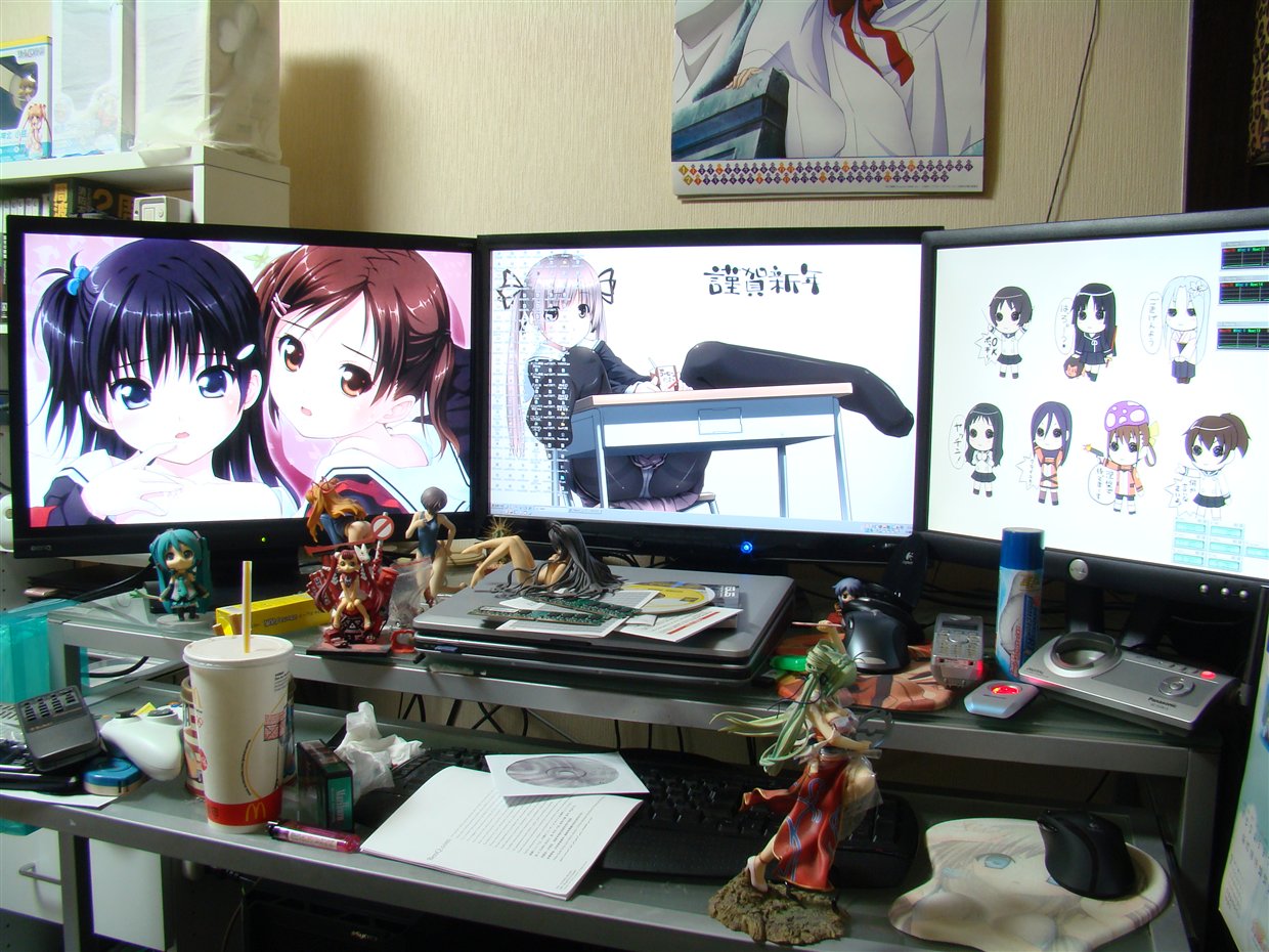 お金がないからこんなにグッズ集められないよてかオタクって金持ちだよな。マイPCはともかくとしても、薄型テレビ、各種ゲーム機とソフト、