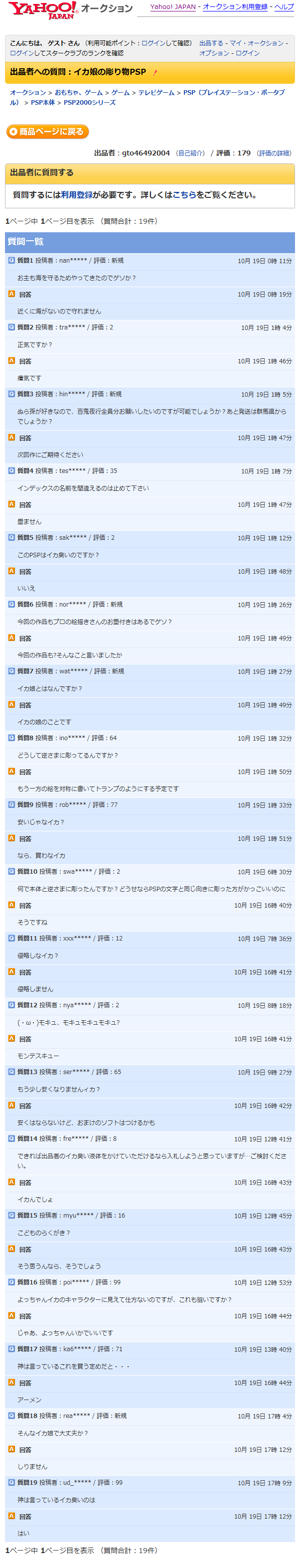 こいつ落札されたことあんの?57:一平くん(東京都) []:2010/10/19(火) 01:09:14.36 ID:EYij4rFi0