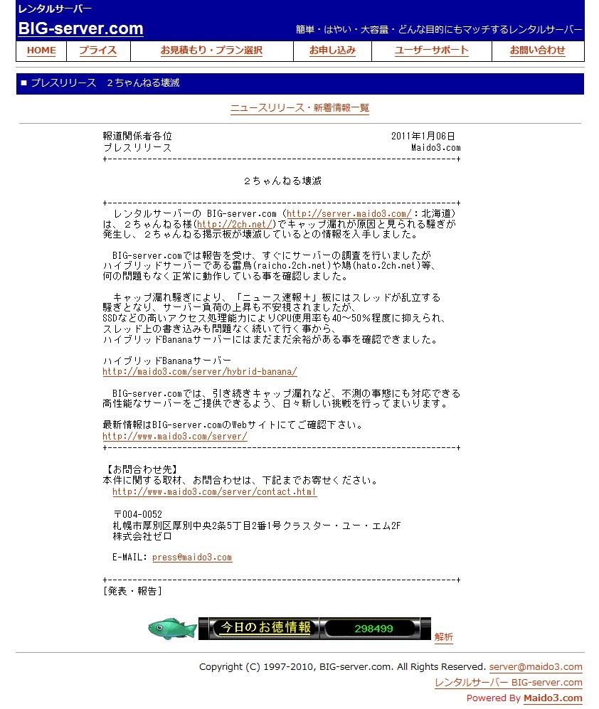 プレスリリース Maido3.com2ちゃんねる壊滅