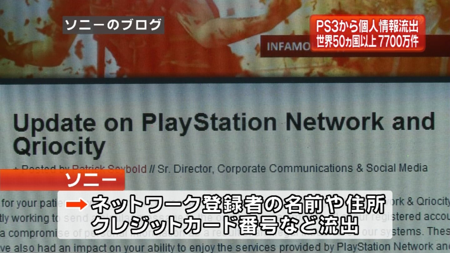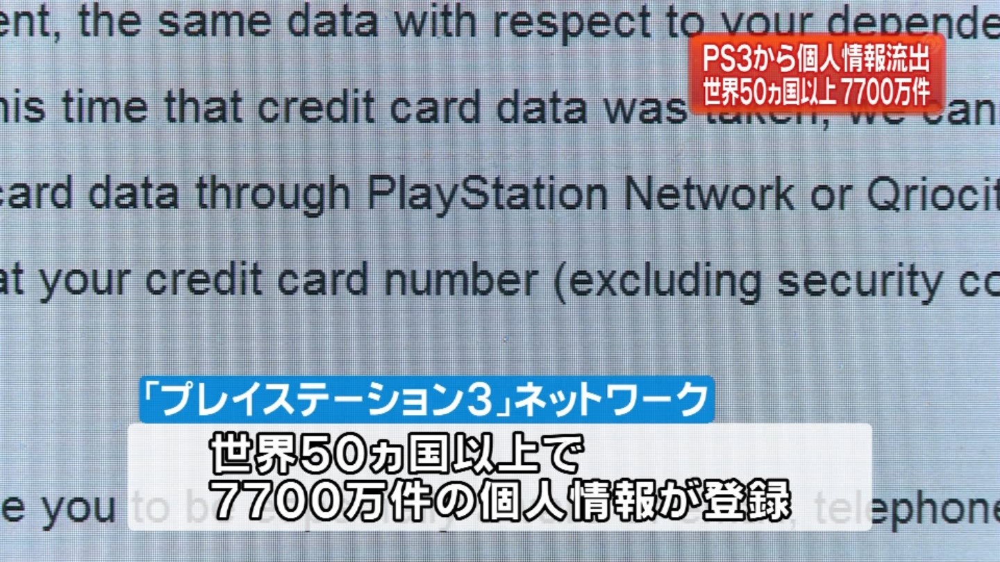 http://www.jiji.com/jc/c?g=ind_30&k=2011042700082世界でも類を見ない規模の個人情報流出につながる恐れがある。