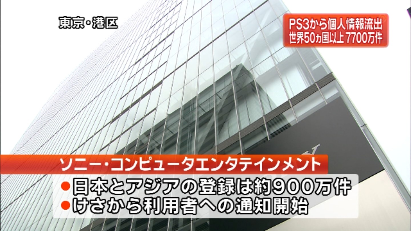 スレタイしか読んでない状態だけど、ソニーがものすごい額の保障とか賠償とかに発展しかねない事態と言うことだな173:名無しさん@涙目です。(岐阜県) [sage]:2011/04/27(水) 12:59:37.34 ID:ZnAdfDP30