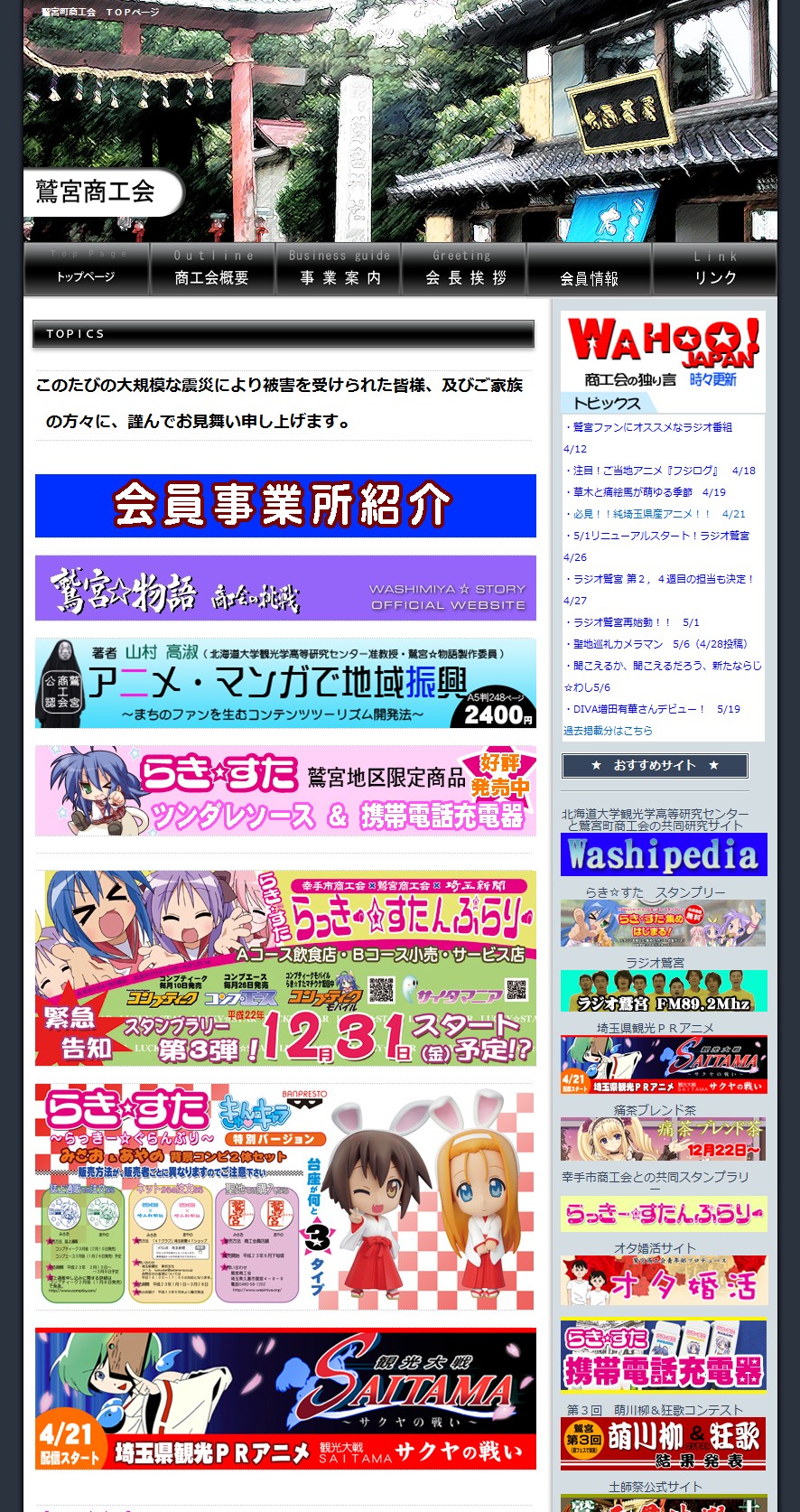 らきすたの鷲宮も最初は迷惑とか言ってたよねhttp://www.wasimiya.org/