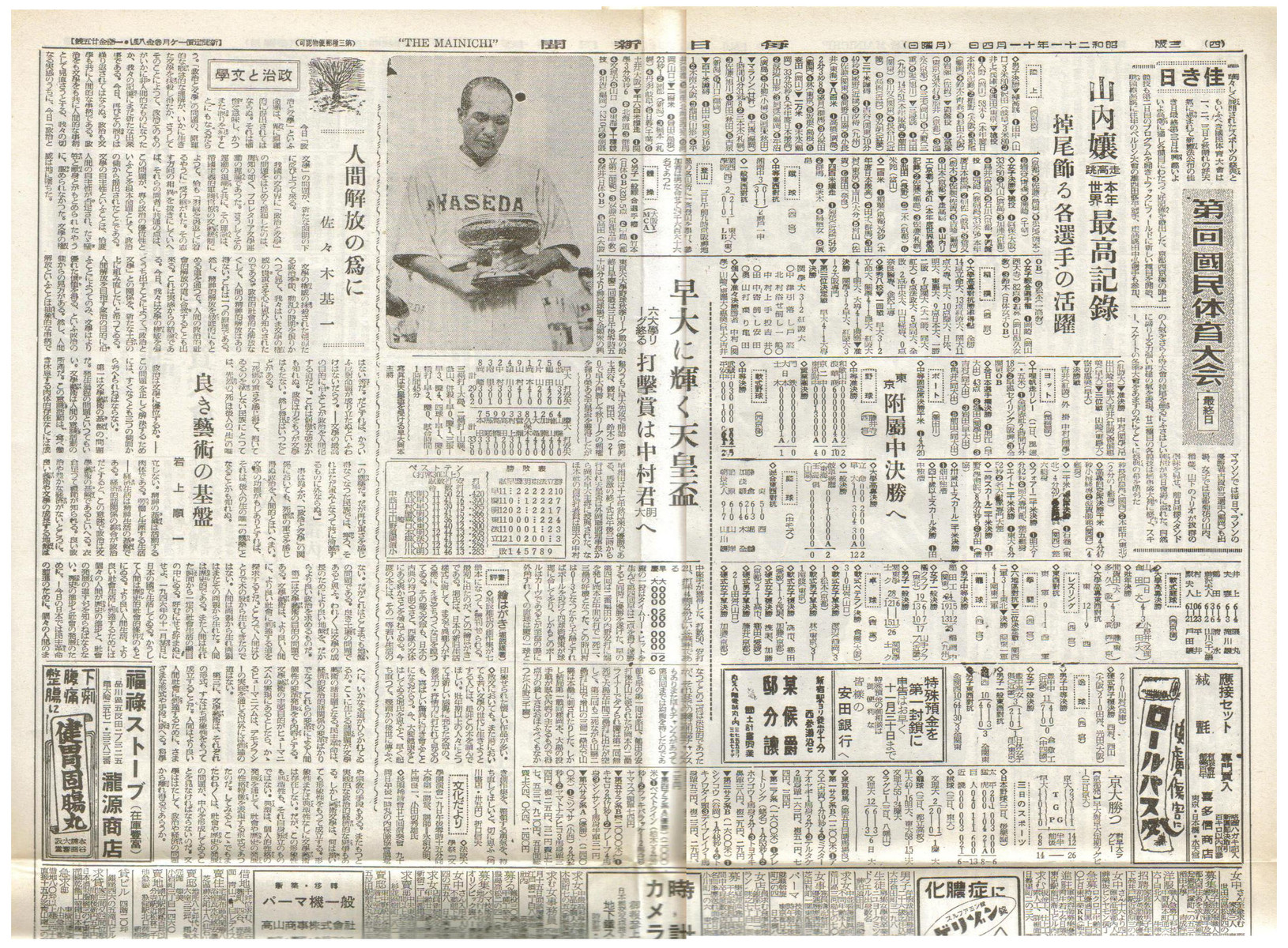 日日新聞(毎日新聞)に飛田穂洲やら橋戸頑鉄やら小野三千麿やら大物六大学OBかつ名記者がいた頃の時代やな