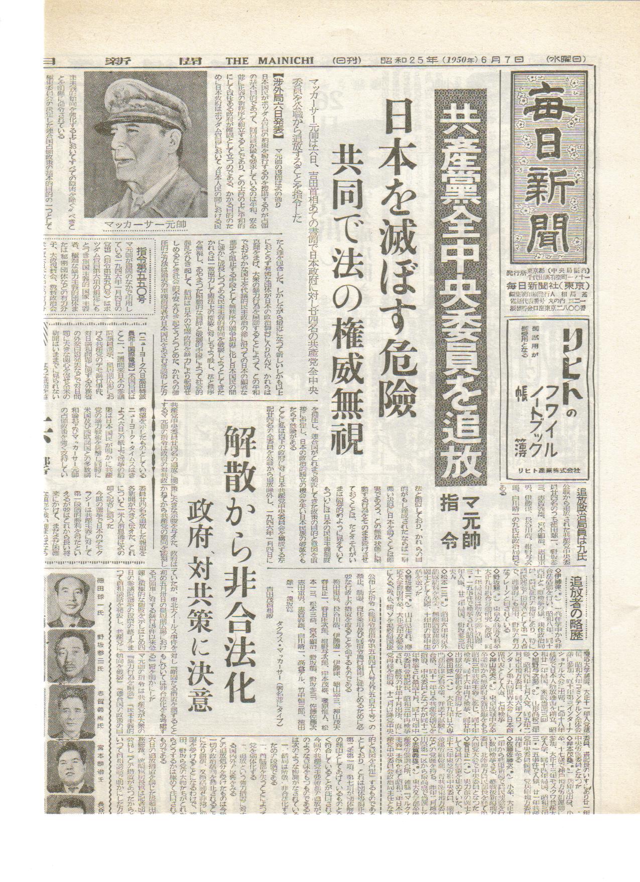 マッカーサーが焦って共産主義者を弾圧した時だな