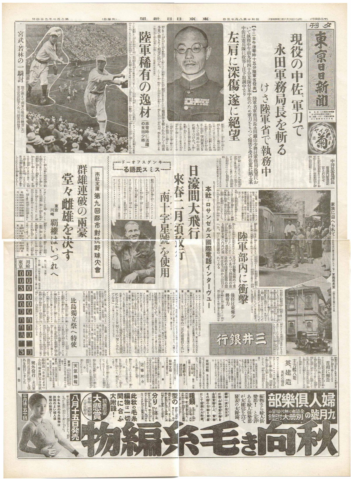 現役の中佐、軍刀で長田軍務局長を斬る けさ陸軍省で執務中