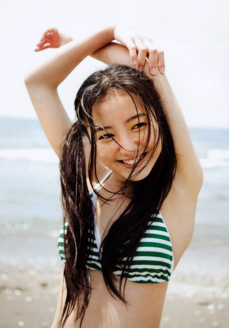 ポップな水着姿から大人びた黒ワンピース姿まで収録。6月に伊豆で撮影。