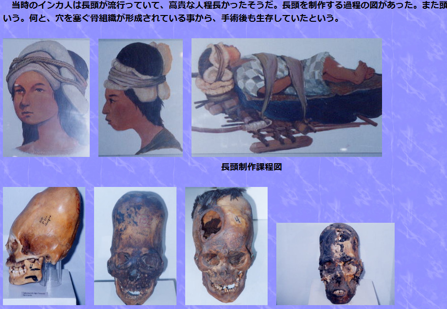 ペルーってかつて頭骨変形の習慣があったんだがそれぐらい知ってるよな147:名無しさん@涙目です。(福岡県) []:2011/11/19(土) 11:35:59.36 ID:43kqQ/SU0