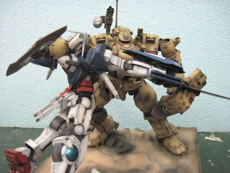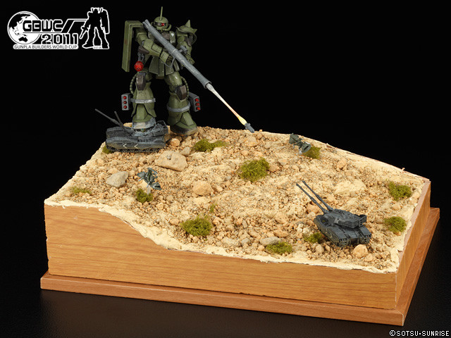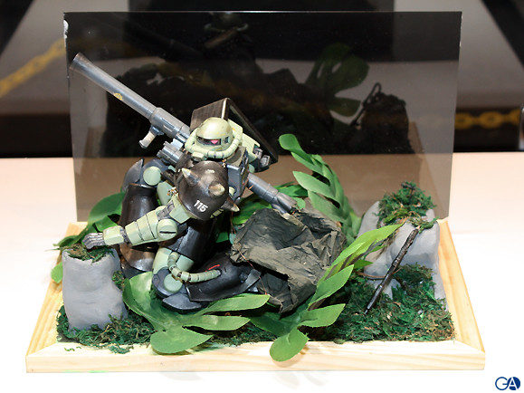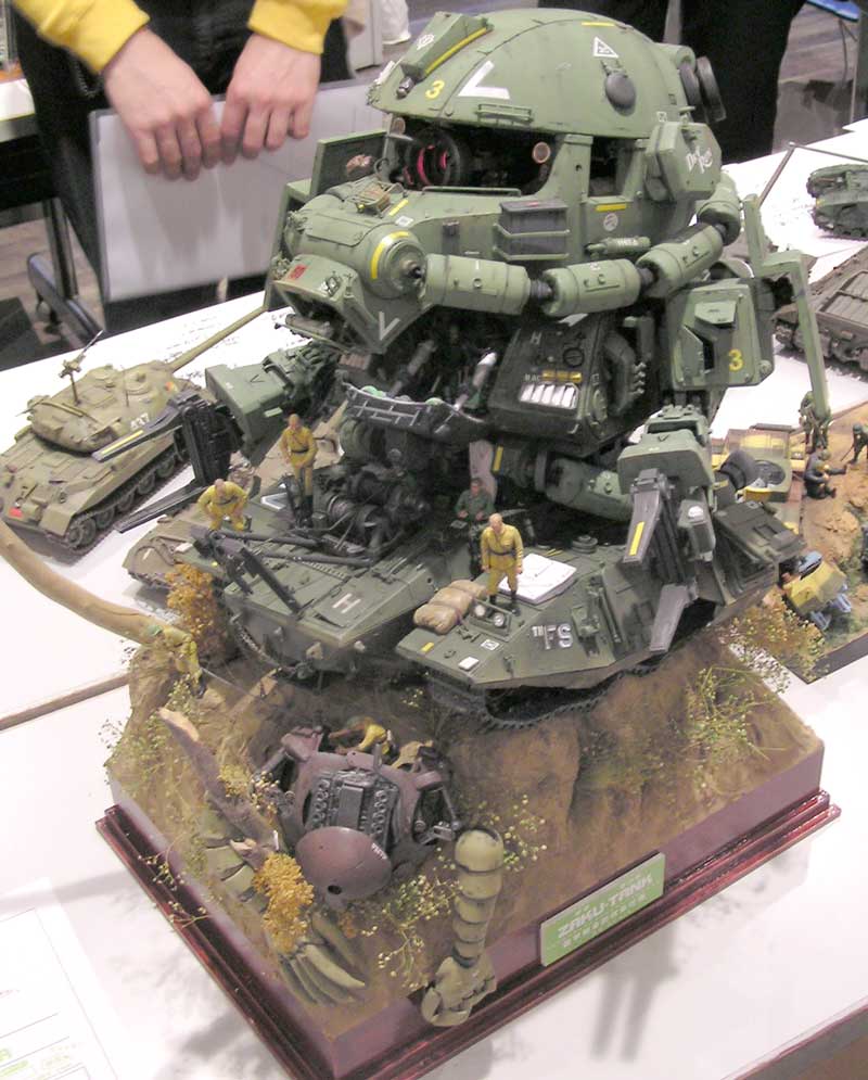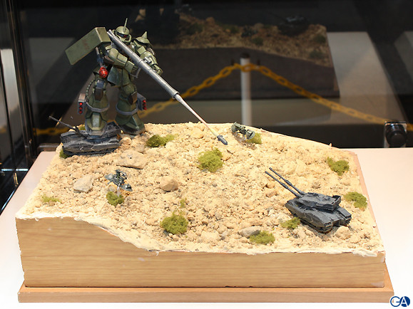 ザクが戦車を踏みつけたり、戦車をバズーカで狙撃する迫力あるシーンを表現したもので、大会の審査員も「ストーリーを感じさせる作り」