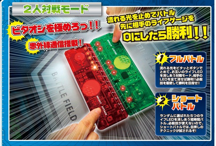 相手の定規の上に自分の定規を乗せることで勝敗を決めるゲームである。
