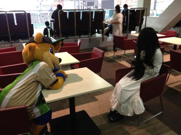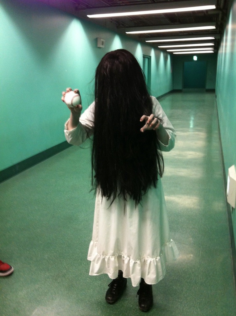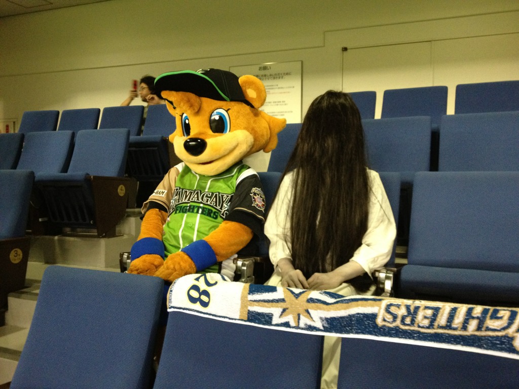 野球観戦中の貞子https://twitter.com/#!/sadako3d/status/195088716509880320/photo/1/large