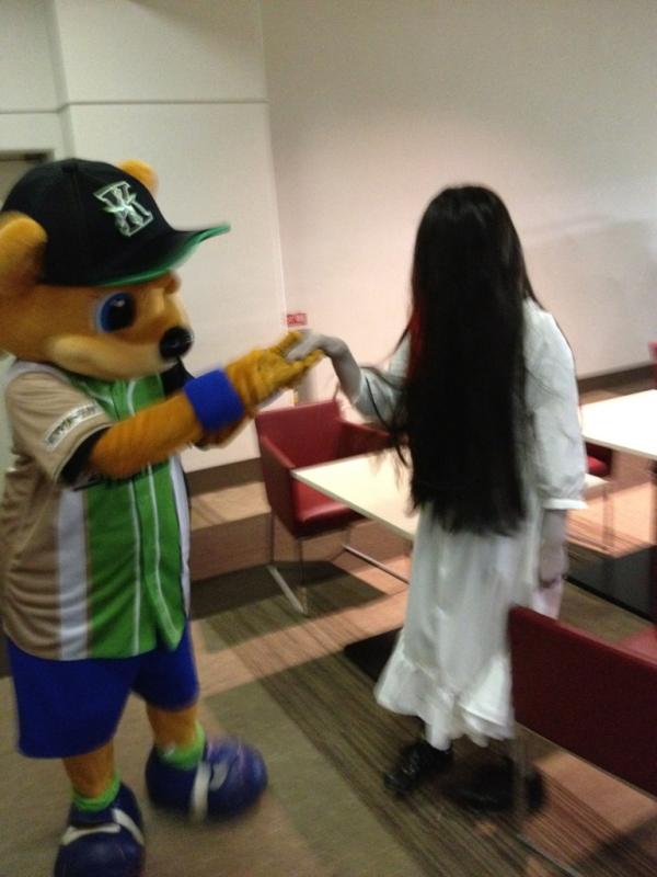 の始球式に映画「リング」の名物キャラクター・貞子さんが登場。マウンドから降り、