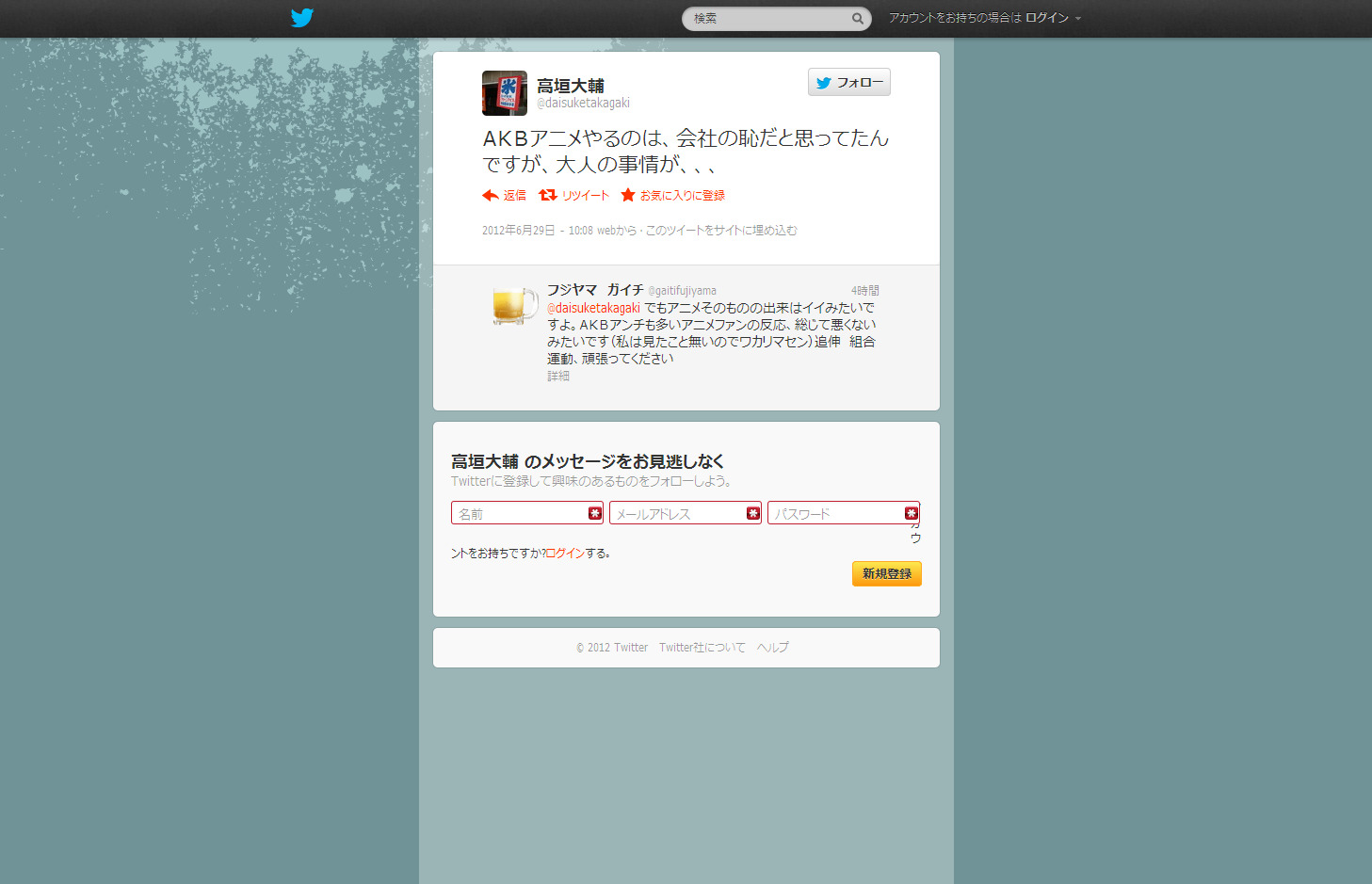 >>19を見る限り、この人アニオタお父さんって感じいちアニオタとして安易な「AKB+アニメ」が許せなかったのかなw