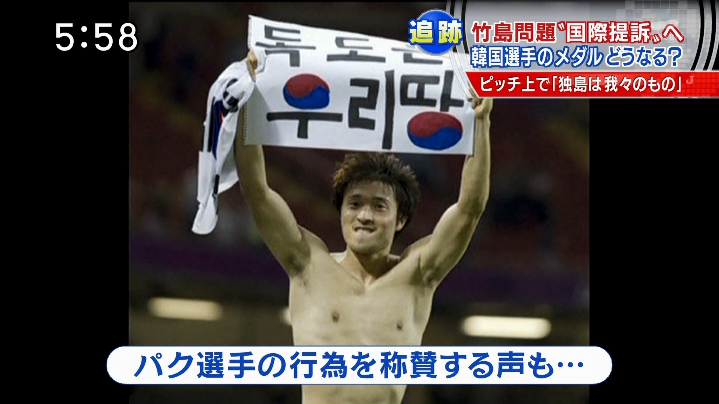 ロンドン五輪サッカー男子の3位決定戦で韓国選手が竹島をめぐる政治的なメッセージを掲げた問題で、