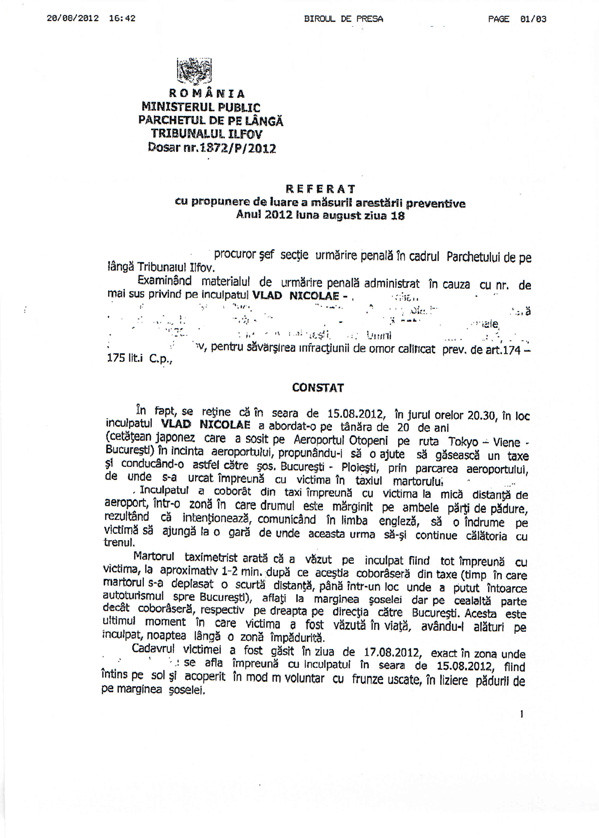 ルーマニア検察の所見(現在一番正確な犯行の内容の詳細だけどルーマニア語)